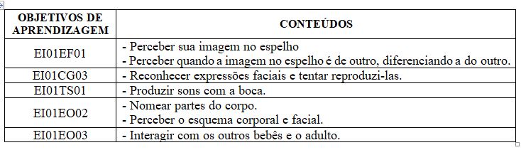 Principais objetivos da BNCC: EI01EO02, EI01EO03, EI02EO05, EI03EO05